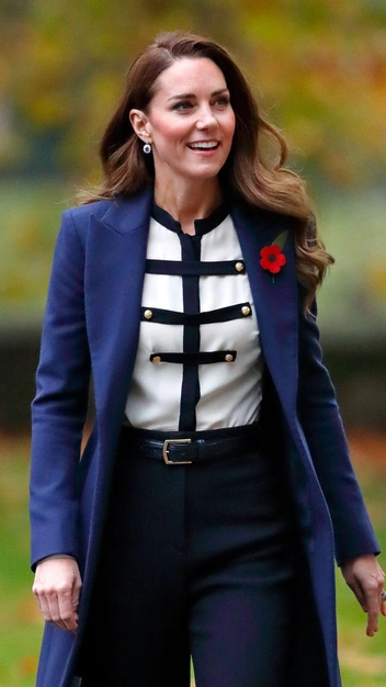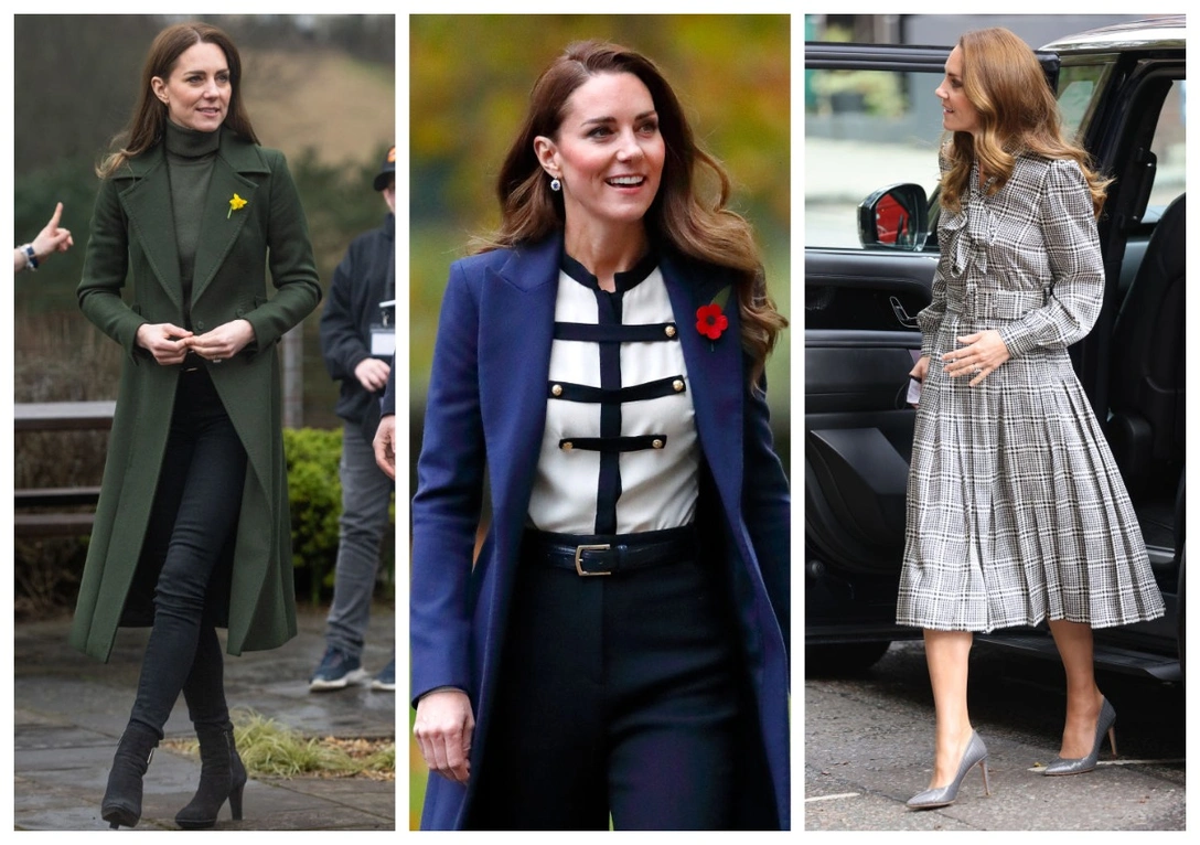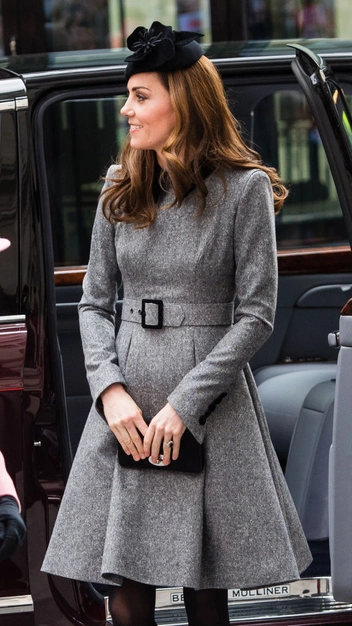 Минималистичное серое платье-пальто со скромным черным воротником и ремнем, подчеркивающим талию, для Кейт сшила ее любимый дизайнер Кэтрин Уокер (читайте также: Было/стало: как дизайнеры перешивают свои наряды ради Кейт Миддлтон). В этом году Кембриджская появлялась в нем на мероприятии в компании с принцем Чарльзом и герцогиней Камиллой, в 2020-м носила платье-пальто на службе, посвященной Дню памяти жертв Холокоста. А в 2019-м надевала любимую вещь для визита в Королевский колледж в Лондоне.