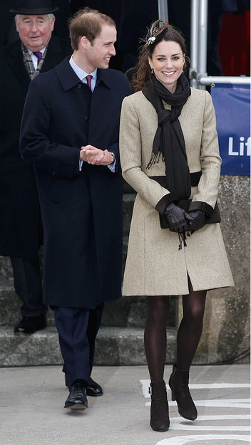 Похоже, черные ботильоны с декоративным ремешком на устойчивом каблуке от бренда Aquatalia Rouge уже очень давно в гардеробе Кэтрин. В этом году она появилась в них во время визита в Уэльс, а в первый раз они были замечены на герцогине 13 (!) лет назад, во время одного из ее первых официальных мероприятий.