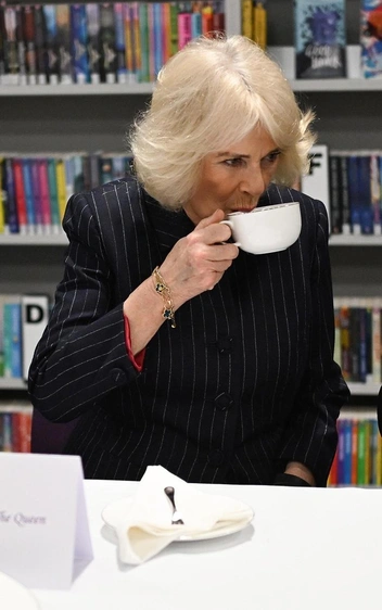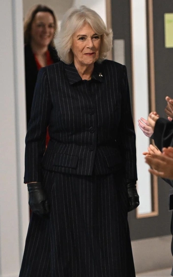 Пока мы спешили на работу, королева Камилла открывала среднюю школу в Лондоне и выбрала для этого необычный для себя образ. Обычно она предпочитает образы в синей, белой или пастельной гамме, но на этот раз сделала ставку на темно-серый костюм с юбкой в вертикальную полоску, сочетая его с замшевыми сапогами. Завершением образа стал любимый браслет Van Cleef & Arpels (впрочем, тут никто и не сомневался).