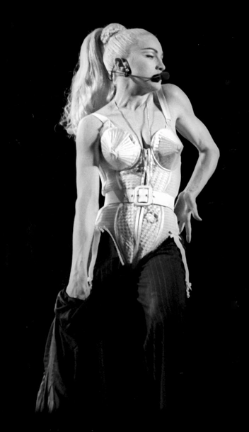 Во время турне Who's That Girl в 1987 году Мадонна вышла на сцену в одном из корсетов с конусообразными чашечками от дизайнера Жан-Поля Готье — образ, который сама поп-певица вскоре и прославила. Изделие было украшено золотом, кисточками и дополнено парой колготок в сеточку — привычное для Мадонны амплуа, которое она будет использовать на протяжении всей жизни.