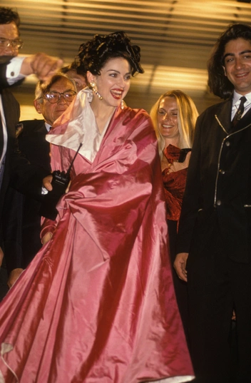Шокировать Мадонна умела не только во время выступлений и съемок видеоклипов. В 1991 певица посетила премьеру собственного документального фильма «В постели с Мадонной» в рамках Каннского кинофестиваля. На ковровую дорожку она прибыла в длинном шелковом халате, но вскоре неожиданно его сбросила и явила миру шелковый бюстгальтер с чашечками-конусами и трусы с завышенной талией (читайте также: Войти в историю: 35 культовых платьев Каннского кинофестиваля).