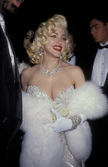 На протяжении карьеры Мадонну нередко сравнивали с другой культовой иконой XX века — Мэрилин Монро. На эту тему певица решила сыронизировать в 1991 году, появившись на «Оскаре» в образе голливудской дивы и под руку с Майклом Джексоном. Фирменные кудри, сверкающее платье от дизайнера Боба Маки и максимально глубокое декольте — дива выглядела действительно потрясающе и перетянула на себя все внимание.