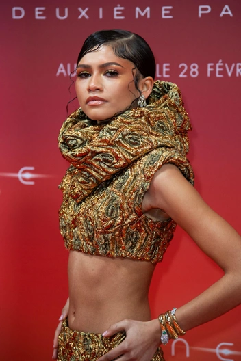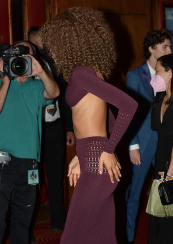 На премьере первой части фильма в Париже Зендея была в ультракоротком топе и юбке с искусственным мехом Maison Alaïa глубокого фиолетового цвета. Образ дополнили мелкие кудри и макияж со стрелками. Стилист Зендеи Лоу Роуч позже подписал фото: «Мы можем смотреть на это весь день». И да, мы согласны.