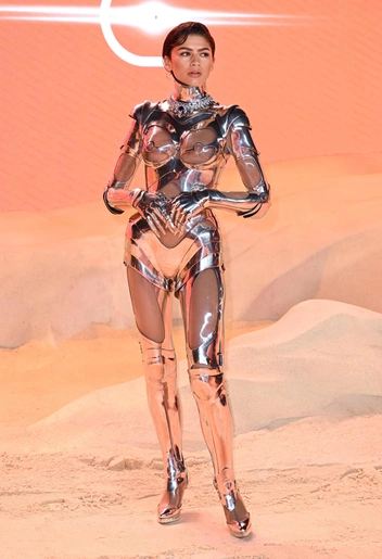 В какой-то момент звезды помешались на архивных коллекциях и платьях икон прошлых веков (одна только Ким в платье Мерилин Монро чего стоит). Но один из самых притягательных архивов — «рыцарские доспехи» из коллекции Mugler 1995 года — никому так и не могли доверить. Традицию нарушила Зендея — дом Mugler предоставил ей наряд для премьеры второй «Дюны». Насчет колье Bulgari было много споров — критики считали, что оно слилось с комбинезоном и не получило должного внимания. По центру украшения был 28-каратный сапфир, а по бокам — бриллианты.
