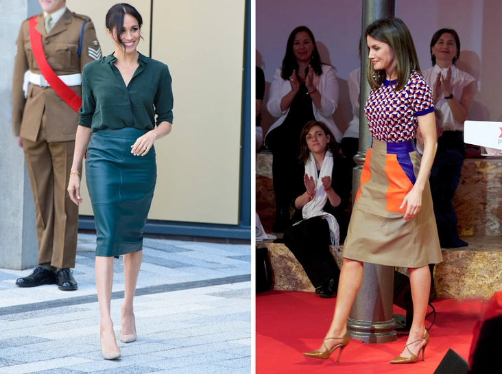 Факт неоднозначный, но одежда из кожи получила одобрение от самых ярких модниц европейских монархий. Так, для первого официального визита в Сассекс вместе с принцем Гарри герцогиня Меган выбрала юбку-карандаш из кожи ягненка Hugo Boss. Модель темного-зеленого оттенка она дополнила блузкой и сумкой в тон и светлым пальто от Armani (подробно ─ «Сассекские в Сассексе»).