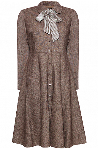 Выбор герцогини универсален даже для тех, кому не приходится выполнять королевские обязанности. Приталенный верх с крупными акцентными пуговицами, расклешенная юбка в складку, тонкий и крайне милый ремешок в тон – все это составляет отличный наряд как для офиса или серьезной деловой встречи, так и для посещения премьеры в Большом театре.