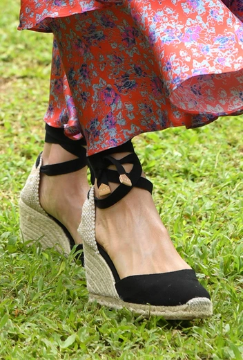 Летом советуем присмотреться к этой обуви всем: когда забеги на лодочках (которые, к слову, тоже сводят с ума всех королевских модниц) в жаркое время могут буквально убить наши ноги, эспадрильи на платформе с изящными завязками вокруг щиколоток станут удачным компромиссом между стилем и комфортом.