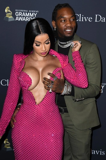 Популярная американская рэперша Карди Би пришла на церемонию вручения музыкальной премии Грэмми-2020 в весьма эпатажном наряде. Рэп-дива украсила красную ковровую дорожку своим образом в приталенном розовом платье, подчеркивающем изгибы тела, с ультра- глубоким декольте. Ситуация на грани: грудь едва была прикрыта небольшими кусочками ткани. Вероятно, если бы не избранник дивы в лице ее мужа, то силиконовый бюст мог стать достоянием общественности. Теперь мы наблюдаем множественные кадры с премии, где супруг Offset заботливо поддерживает Карди… и ее грудь.