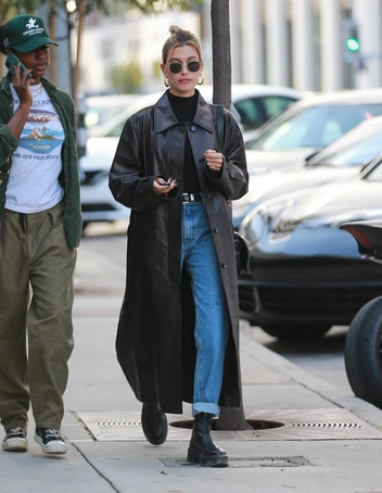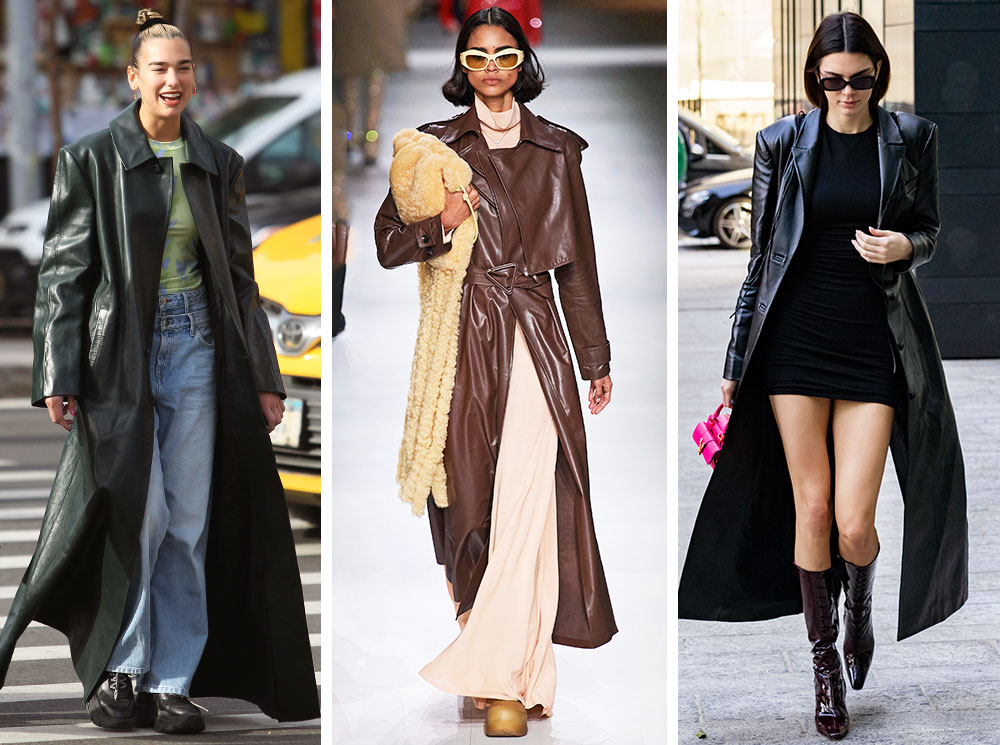 В числе поклонников этой тенденции оказалось немало звезд, и практически все — главные законодатели трендов. Хейли Бибер, Белла Хадид, Лили-Роуз Депп, София Ричи и Зендая носят их не только во время повседневных прогулок по делам, но и для презентаций и ковровых дорожек. Самой главной любительницей тренда стала Кайя Гербер: она активно носит кожаные пальто с 2018 года, сочетая их с максимально простыми и базовыми вещами из 90-х, как когда-то делала ее звездная мама Синди Кроуфорд: прямыми брюками, кепками, кедами и лаконичными кроп-топами.