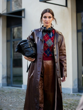Хотя Белла Хадид обожает эксперименты с модой, иногда ей хочется одеться легко и при этом стильно. И кожаное пальто легко окажет ей такую услугу. Дополнив его свободными брюками, лаконичным топом и грубыми ботинками, вы получите простой и ультрамодный образ, на который не потребуется много времени. А если хотите разнообразить осенне-зимнюю палитру, возьмите за основу карамельный кожаный тренч и дополните его кремово-белой водолазкой и классическими брюками.