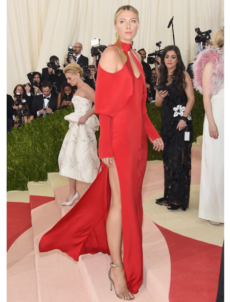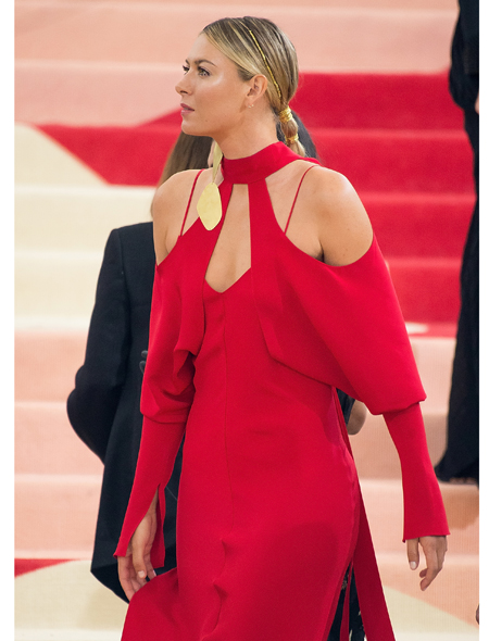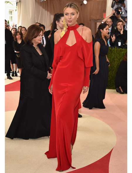 Бал Института Костюма традиционно собирает под сводами музея Метрополитен самых разных звезд, так что, не удивительно, что в минувший понедельник там была замечена знаменитая на весь мир теннисистка Мария Шарапова. «Замечена», пожалуй, не то слово. Это первое появление Маши на публике после начала допингового скандала. И словно бы невзначай Шарапова выбрала для этого случая алое платье необычного кроя из весенне-летней коллекции Juan Carlos Obando.