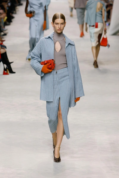 Поэтому летом 2026 года готовимся сочетать красную помаду с голубыми платьями. И не только — такой микс пастельного и яркого оттенков отлично впишется и в виде других элементов гардероба. Это доказывают подиумные луки последних лет: Prada на своих шоу создает колорблокинг из васильковых брюк и гранатовых свитеров, Fendi расставляет малиновые акценты в голубых аутфитах, а Versace дает лишь легкий намек на цвет, заправляя рубашку модели в шорты с алой резинкой.