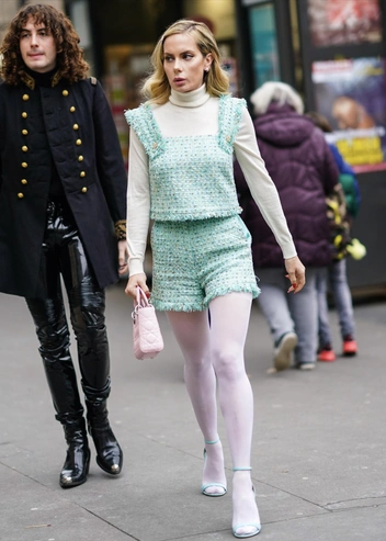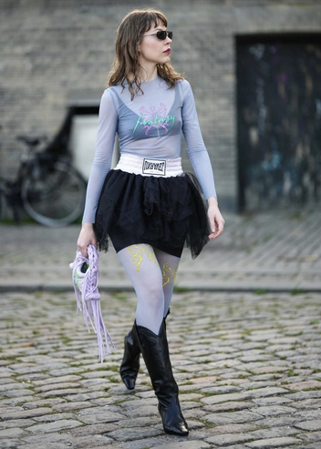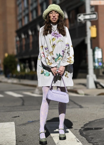 Помните времена коронавирусной пандемии, когда в тренде были инфантильные украшения: бусы, колье из бисера, кольца из полимерной глины и серьги-ракушки? Тенденция на детский гардероб возвращается, но в другом виде: теперь самые модные девушки носят белые колготки, как, например, Маргарет Куэлли. Если вы хотите полностью соблюсти актуальную стилизацию, тогда дополните аксессуар туфлями Мэри Джейн или балетками с бантом или ремешками.