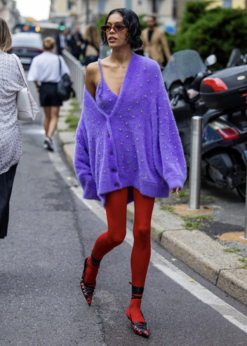 Осень прошлого года задала тренд на красные колготки: девушки по всему миру дополняли ими монохромные черные образы или составили алые тотал-луки. Многие и не надеялись, что яркая тенденция продолжит свое существование в 2024 году — слишком много ее было в 2023. Но дизайнеры на подиуме нас переубедили: красные колготки нужно носить не только этой весной, но и следующей осенью. Выбирайте модели из плотных материалов и стилизуйте их с лаконичной одеждой, чтобы не получить нелепый или вульгарный образ.