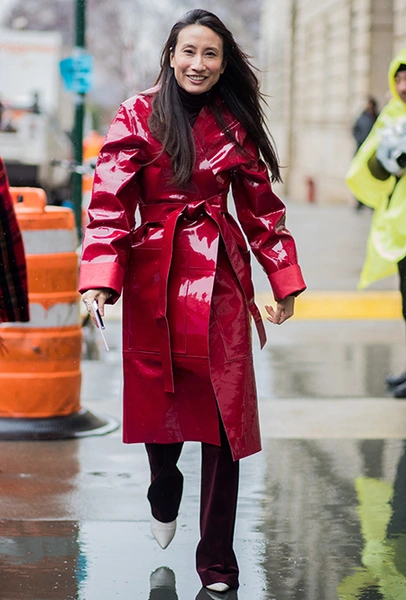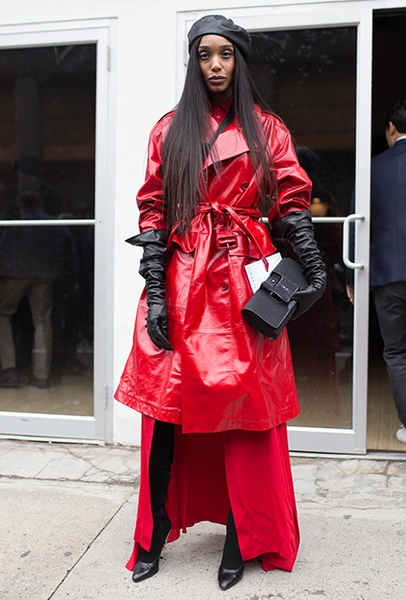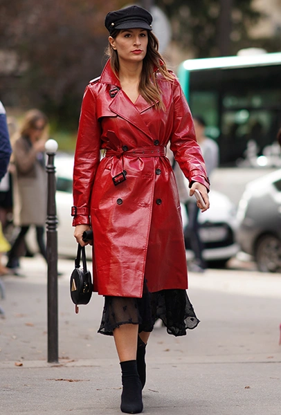 Красный плащ — несомненный хит стрит-стайла очередного февральского модного марафона. Блейк Лайвли в Нью-Йорке приезжает в алом виниле на шоу любимого Майкла Корса, Алекса Чанг неделей позже хвастает похожим на весенне-летнем показе Burberry. В январе его примерила самая модная топ-модель в мире — 21-летняя Белла Хадид, но еще раньше — аж год назад — потенциал кожаного плаща в оттенке бургундского вина оценила опальная Мирослава Дума: в чем в чем, а в умении почувствовать самые острые тренды ей точно не откажешь.