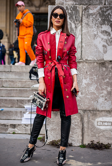 Красный плащ — несомненный хит стрит-стайла очередного февральского модного марафона. Блейк Лайвли в Нью-Йорке приезжает в алом виниле на шоу любимого Майкла Корса, Алекса Чанг неделей позже хвастает похожим на весенне-летнем показе Burberry. В январе его примерила самая модная топ-модель в мире — 21-летняя Белла Хадид, но еще раньше — аж год назад — потенциал кожаного плаща в оттенке бургундского вина оценила опальная Мирослава Дума: в чем в чем, а в умении почувствовать самые острые тренды ей точно не откажешь.