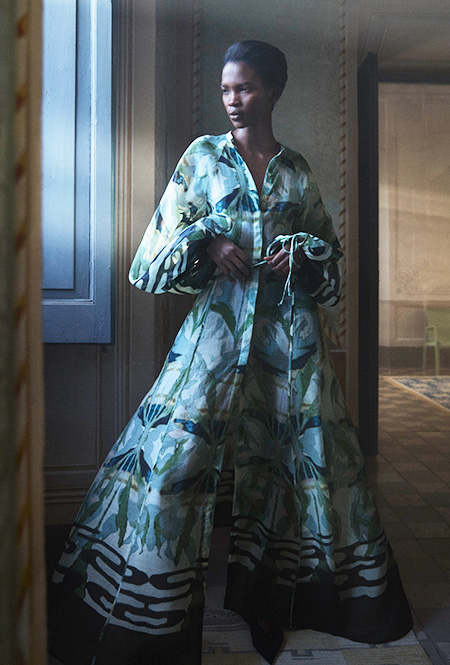 Среди ключевых образов коллекции — длинное белое платье без рукавов из Econyl с вышивкой из органического хлопка, длинное зеленое жаккардовое платье из переработанного полиэстера и черный жаккардовый костюм. Дополнить их можно украшениями из переработанного серебра в форме тюльпанов и кисетом, украшенным бусинами и пайетками из переработанного пластика.