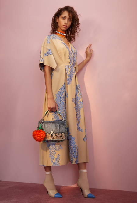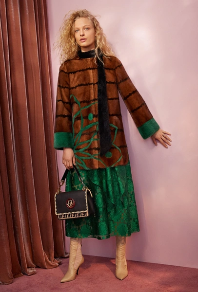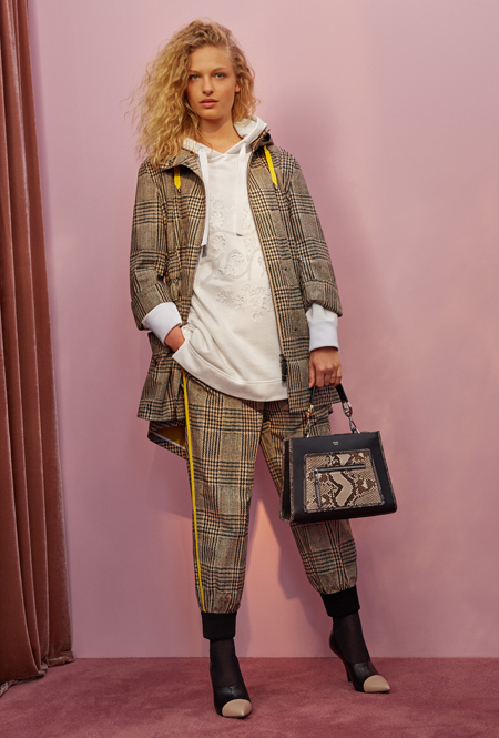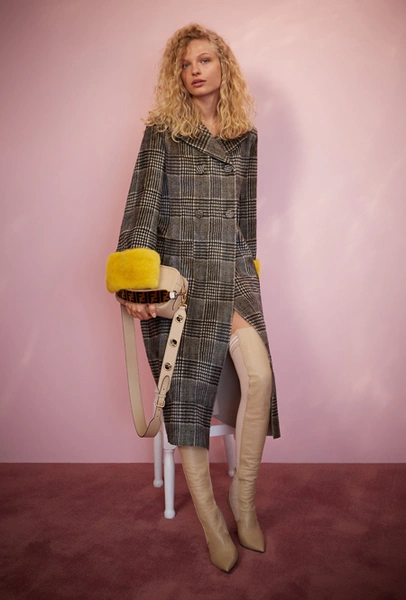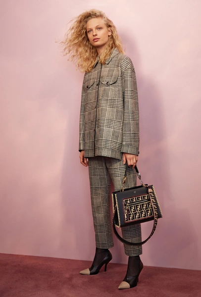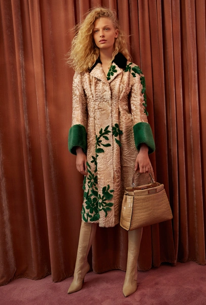Новая круизная коллекция Fendi – ода деталям и мастерству портных и вышивальщиков. Известный перфекционист КарлЛагерфельд в очередной раз построил все на блистательных мелочах. Вот простое графичное бежевое пальто с принтом из лиловых цветов, похожих на сирень. Но стоит приглядеться, как станет понятно, что это не рисунок, а филигранная вышивка. Крой при этом настолько выверенный, что вещь кажется вырезанной из картона. Ярко-оранжевые прямоугольные нашивки на рукавах делают образ динамичным, уводя чуть в сторону от приевшейся «классики».