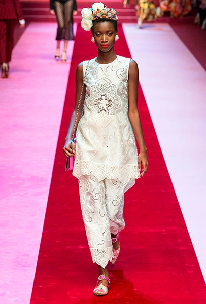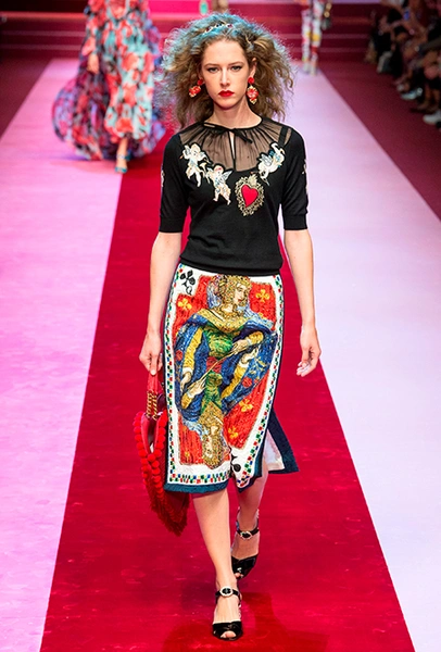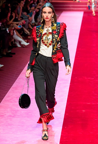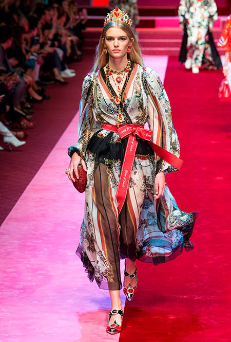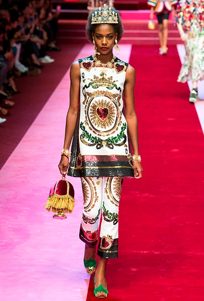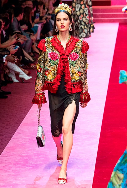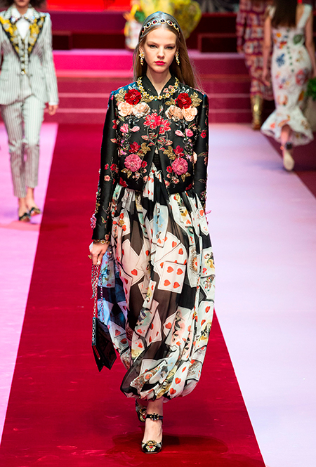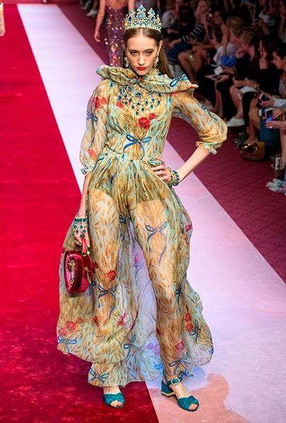 «Последние коллекции Dolce & Gabbana – это не мода, это Диснейленд», – бросил накануне показа SS 2018 кто-то из модных редакторов, приехавших в Милан. В этой фразе не было злого сарказма – все мы любим сказки и парки с аттракционами, а Доменико Дольче и Стефано Габбана в последнее время строили свои коллекции на эстетике детства и вечного праздника, и она, эта эстетика, успела всем полюбиться не меньше, чем драматичное чёрное кружево и полупрозрачные туалеты в пол.