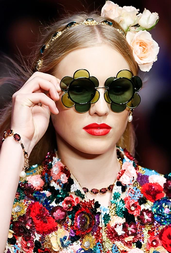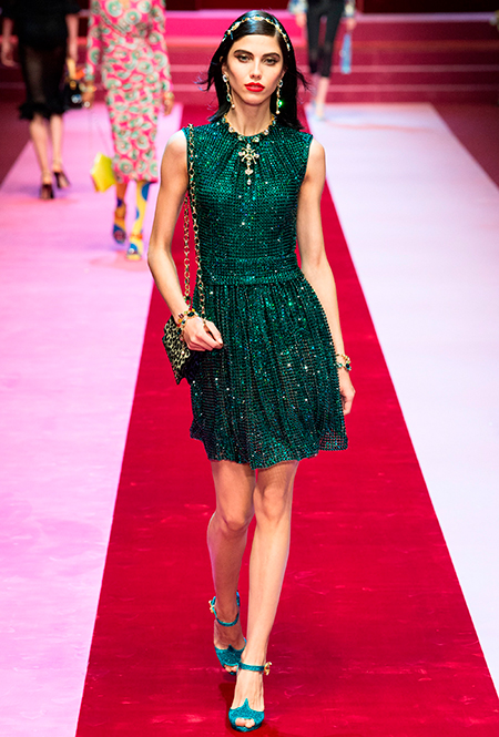 Как и всегда отчасти коллекцию «делали» яркие аксессуары. Никуда не исчезли ставшие символом бренда диадемы. Темные очки по-прежнему в массивных фигурных оправах, а пёстрые платья сочетаются с не менее пестрыми крупными серьгами. Одним словом, даже если «Диснейленд» закончился, благодаря легендарному дуэту, мы всегда найдём, чем порадовать своего внутреннего ребёнка.