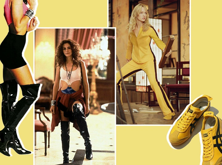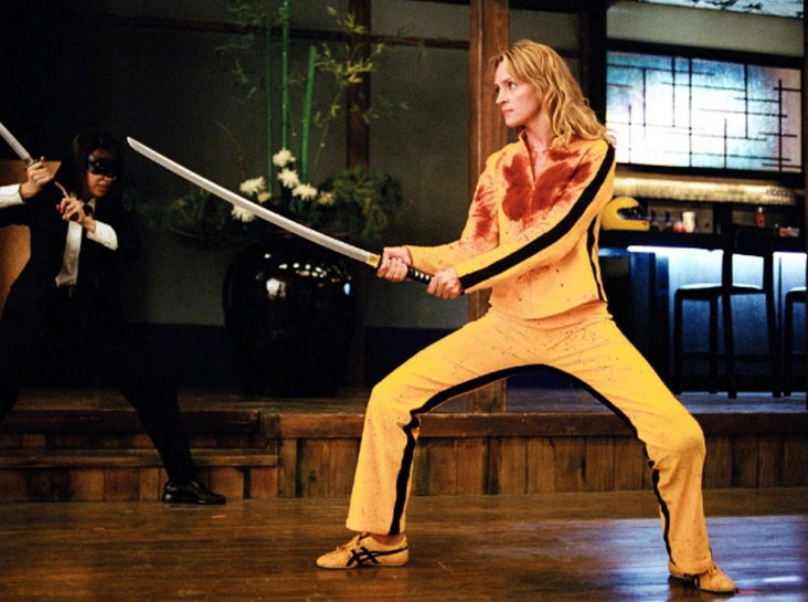 Еще одной сенсацией в мире кино и моды стал образ Умы Турман в ленте «Убить Билла. Фильм 1» — желтый костюм и кроссовки модели Tai-Chi от японского бренда Onitsuka Tiger. Как и в большинстве произведений Квентина Тарантино этот запоминающийся наряд был пересмотрен режиссером у великих азиатских кинематографистов и стал знаком уважения и аллюзией на легендарный желто-черный боевой костюм Брюса Ли. Однако в то время как Ли носил модель Mexico 66, «Черная мамба» примерила похожую версию Tai-Chi. Образ Беатрикс был продуман до малейших деталей — на подошве обуви красовалась говорящая надпись F**k you.