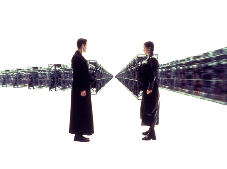Костюмы, разработанные художницей по костюмам Ким Барретт, имели особое влияние на моду — на подиумах мы регулярно видим кожаные плащи и узкие солнцезащитные очки, моментально отсылающие к образам главных героев. Ботинки, которые носили Тринити и Нео, играют не меньшую роль. В отличие от кроссовок Марти Макфлая в картине «Матрица» четкого указания на бренды нужно было избегать — Барретт объясняла, что из-за большого количества крупных планов, особенно в боевых эпизодах, о конкретных лейблах и продакт-плейсменте не могло быть и речи.