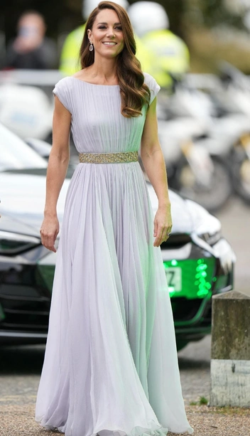 И это было не единственное платье Кейт от Alexander McQueen, которое она надевала повторно. К примеру, в 2011 году герцогиня появилась на премии BAFTA в платье лавандового цвета с серебряным поясом. И через 10 лет, на премии Earthshot Кэтрин вновь выходит в этом платье, изменив только серебряный пояс на золотой.