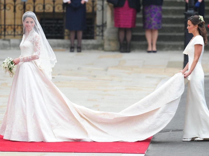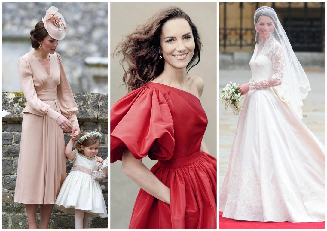 Кэтрин была в Alexander McQueen на своей свадьбе, и для чужих свадебных торжеств она также выбирала этого британского дизайнера. В 2017 году, по случаю свадьбы Пиппы Миддлтон и Джеймса Мэттьюса, Кейт надела шелковое платье пудрового цвета.
