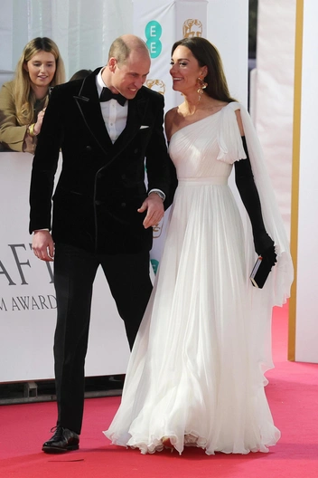 Если Кейт Миддлтон решает посетить вечернее мероприятие, значит она точно затмит своим внешним видом даже мировых звезд. И основные вечерние наряды, которые готовил Alexander McQueen, были выполнены для премии BAFTA, которую герцогиня посещает почти каждый год. Так, в 2019 году дизайнеры разработали для Кэтрин белоснежное струящееся платье с открытым плечом и декоративными элементами. Его же, но в немного измененном варианте, Кэтрин надела на премию в 2023 году, дополнив образ черными бархатными перчатками, которые вторили пиджаку принца Уильяма.
