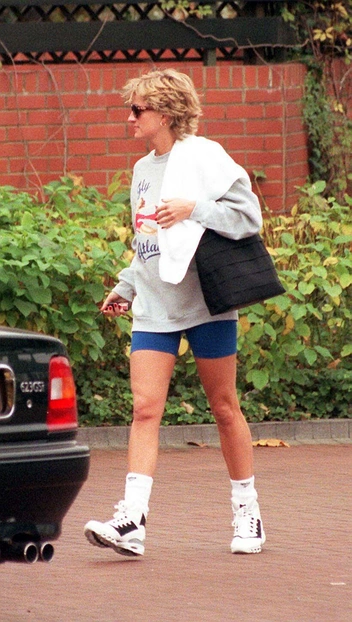 Диана обожала комфортную одежду, и вне публичных мероприятий платьям и юбкам предпочитала джинсы и свитшоты. Одним из самых любимых предметов гардероба принцессы были велосипедки, которые в 2016 году в моду вновь вернула Ким Кардашьян. В 80-е и 90-е леди Ди практически всегда можно было встретить в велосипедках и объемном свитшоте с надписью или принтом. Именно такой образ часто всплывает в памяти многих при мысли о Диане (читайте также: Самые культовые «платья мести» в истории: от декольте принцессы Дианы до «голой» Беллы Хадид).