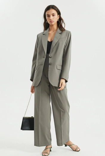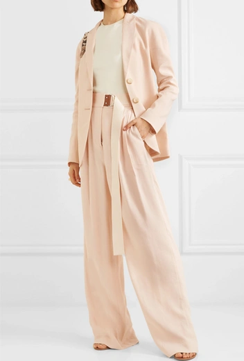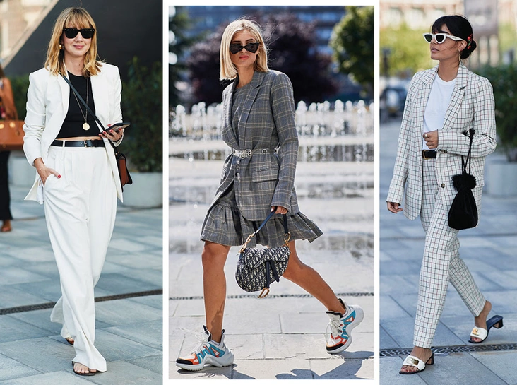 Если оголять колени в ваши планы (и регламент компании) не входило, найти идеальный летний костюм для офиса можно даже с длинными брюками (читайте также: Как подобрать брючный костюм, который вас не разочарует). Присмотритесь к палаццо или расслабленным фасонам с защипами, а преимущество отдавайте легким и струящимся тканям. Такие будут комфортны даже в темных расцветках и отлично подойдут не только к офисной капсуле, но и для ваших повседневных нужд – например, в ансамбле с кроп-топами или практичными футболками.