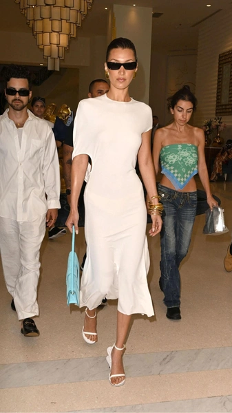 Если говорить о платьях и сарафанах, то тренд на трикотажные модели с пышными юбками безупречно вписывается в стилистику «тихой роскоши». Это подтвердила и Кендалл Дженнер, которая пополнила свой гардероб разнообразными платьями, напоминающими цветок. В этом сезоне марки предлагают выбирать наряды с заниженной посадкой, чтобы подол начал расширяться только в области бедер.