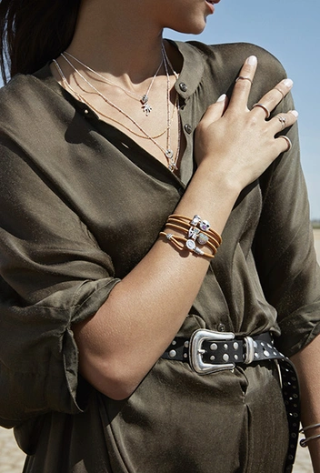 Надевайте сразу несколько двойных цепочек из новой коллекции на шею, стилизуйте браслеты крутыми шармами, комбинируйте украшения между собой и зажигайте на своём фестивале!