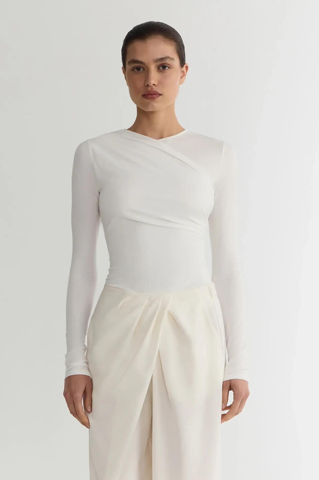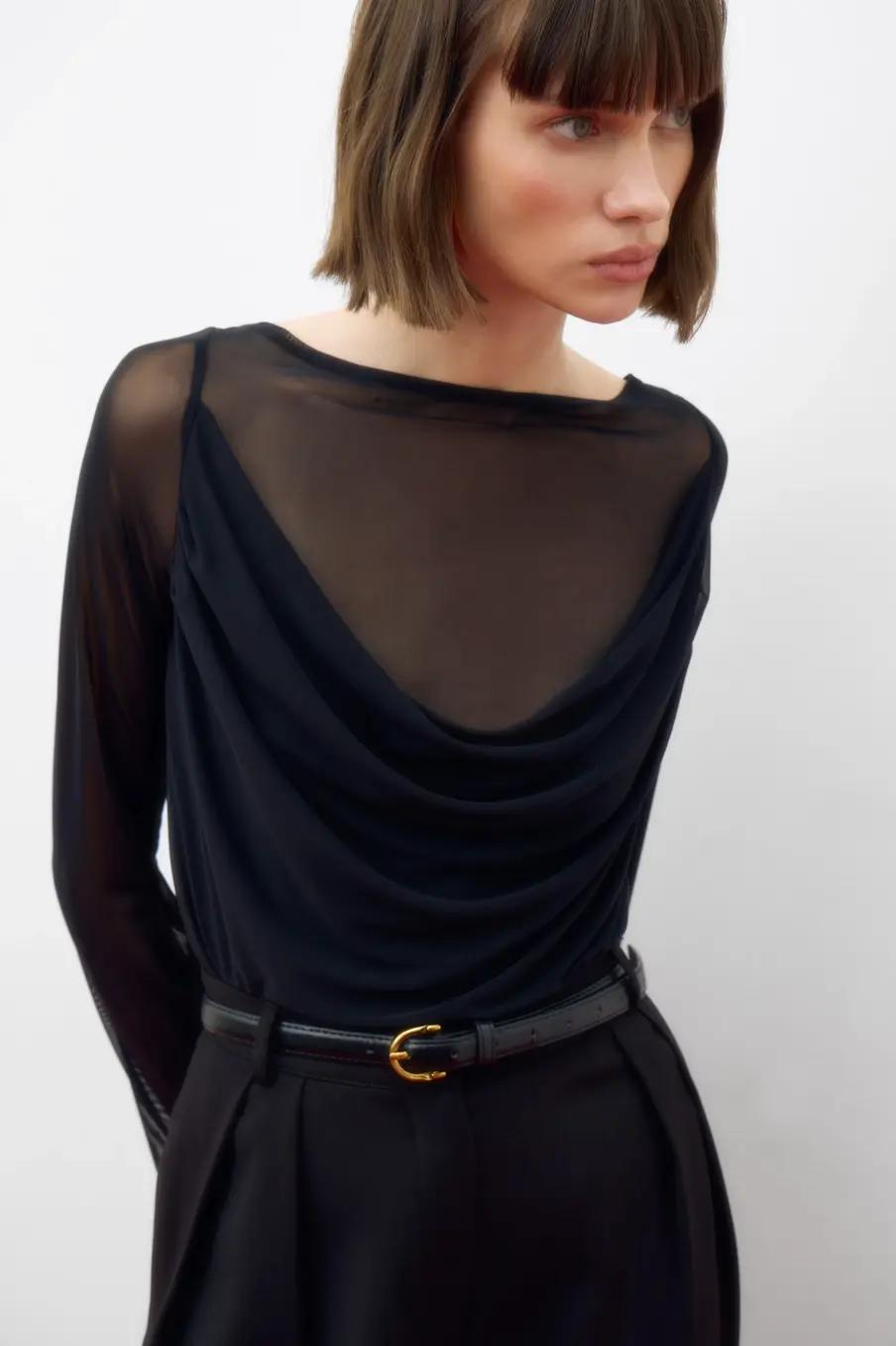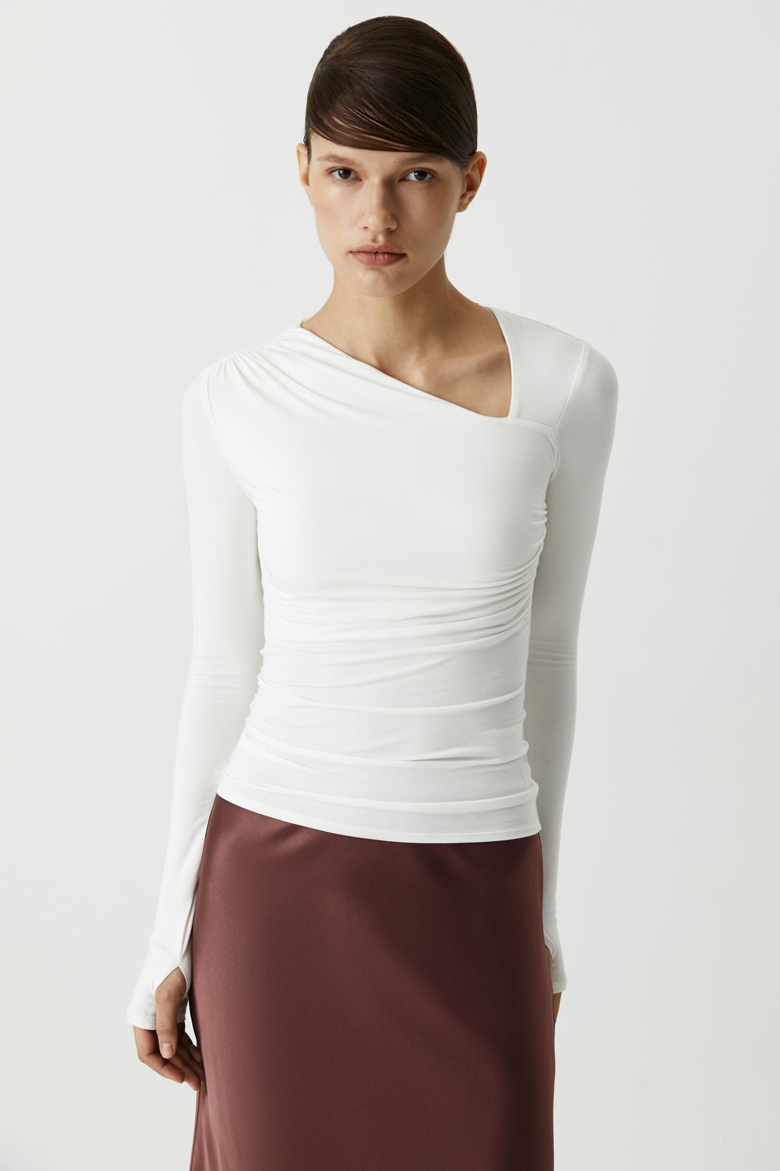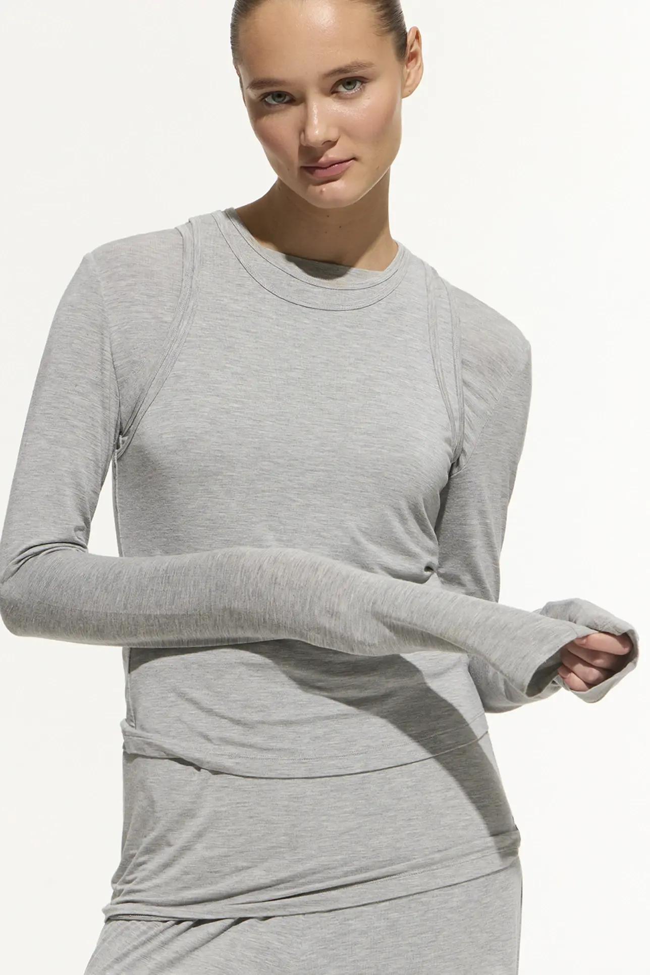Верх с асимметричными вырезами — это всегда немного экстравагантно, даже если исполняются на таком базовом материале как лонгсливы. На Неделях моды FW/25-26 асимметрия была одним из доминирующих трендов, поэтому вполне предусмотрительно вписать новый вариант лонга в свой осенний гардероб.