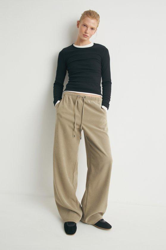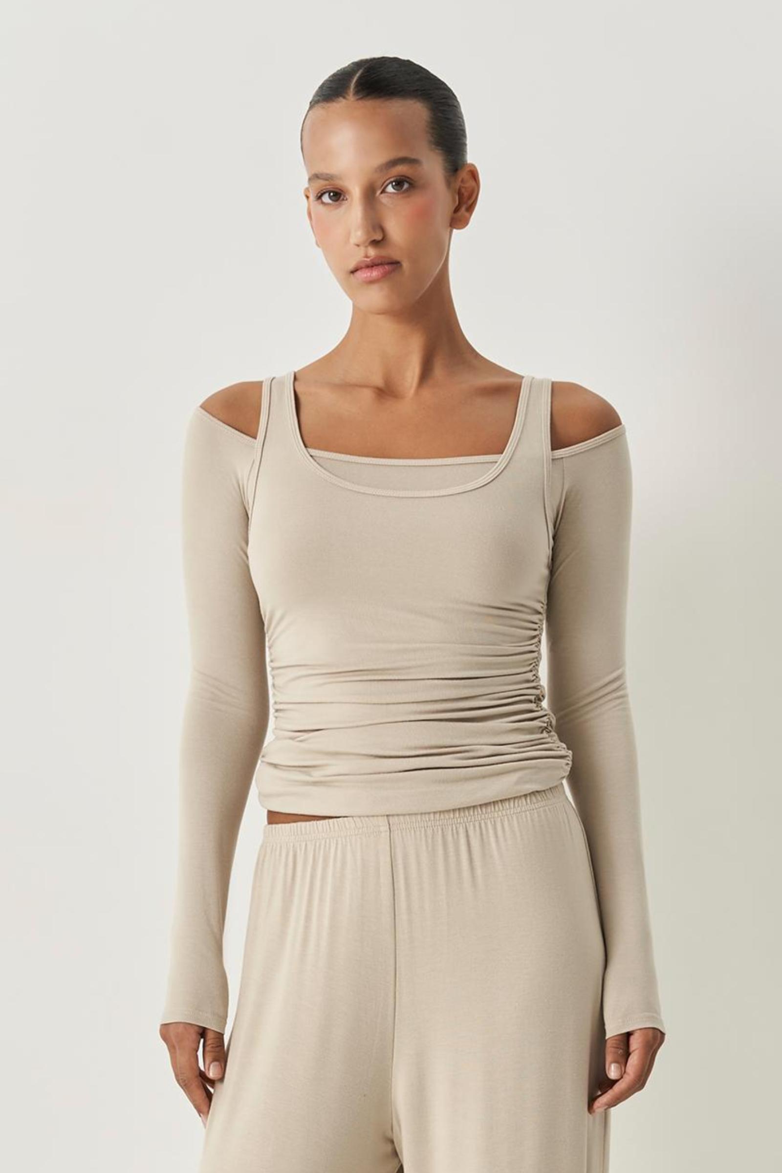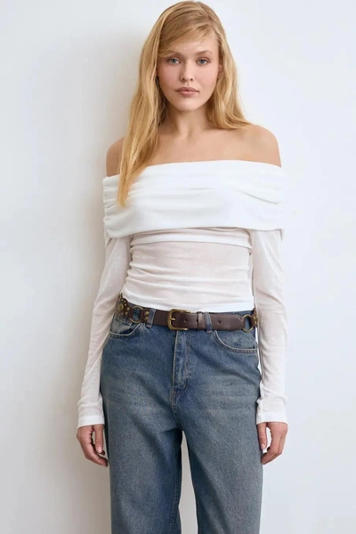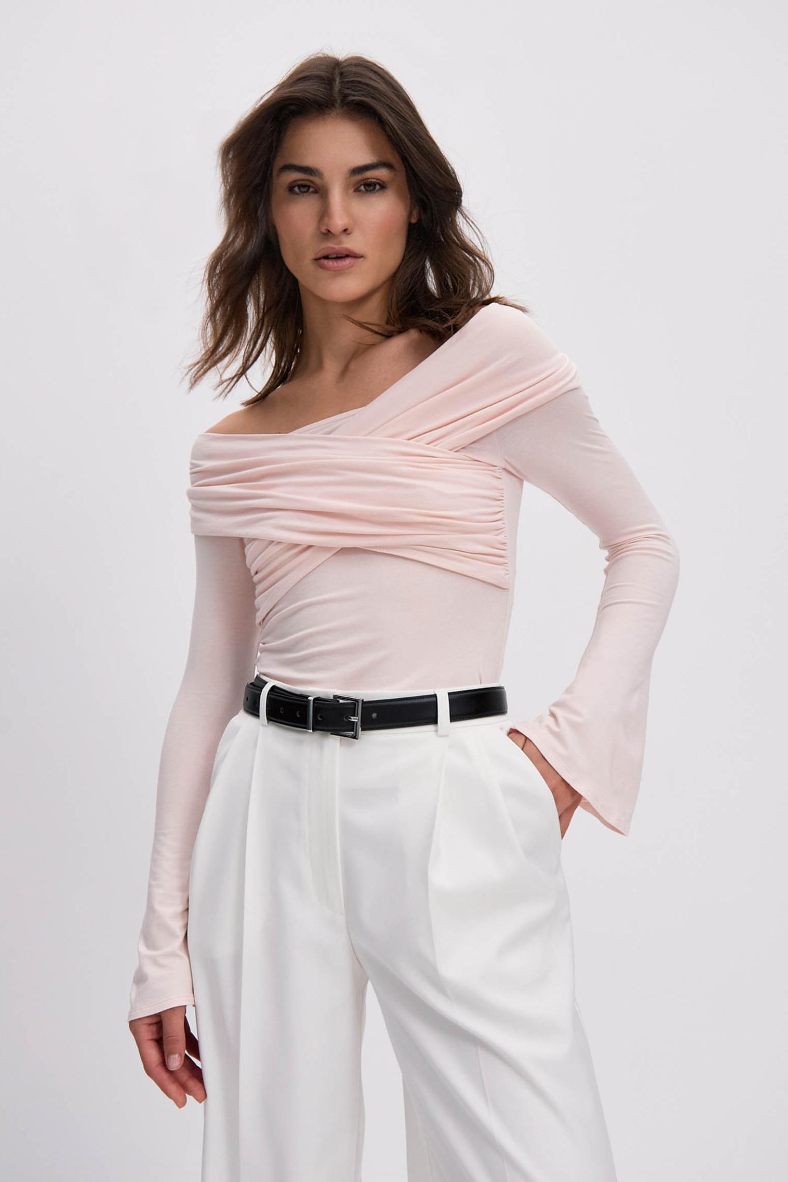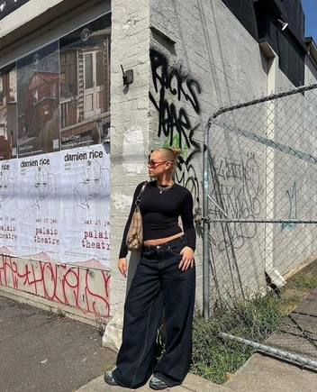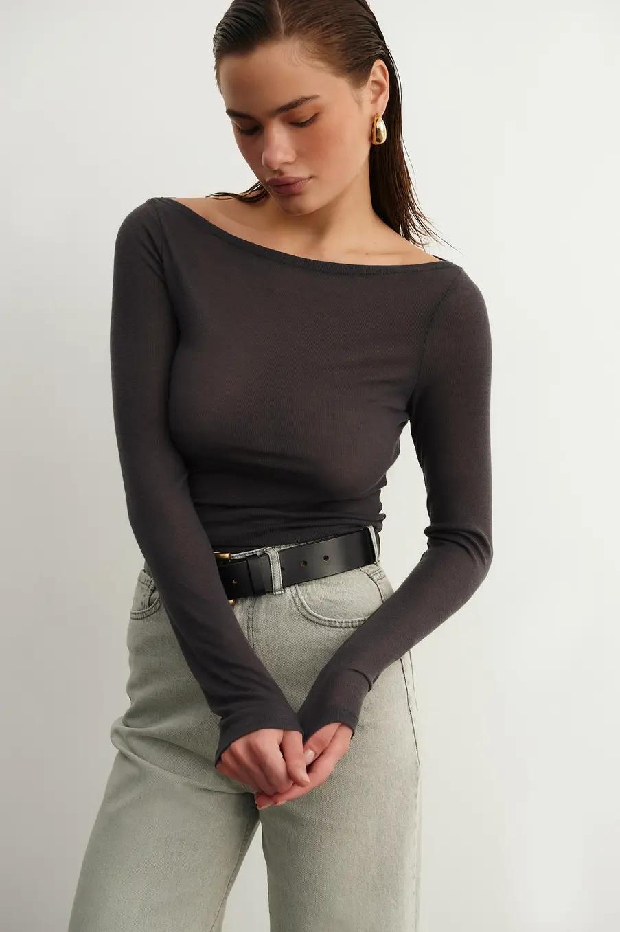 С чем носить лонгслив со спущенными плечами осенью 2025?