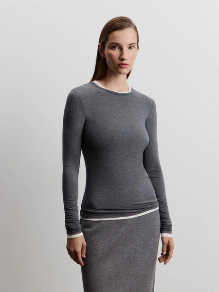 Наследие моды 90-х — темный лонгслив, надетый на контрастный белый, в моде с осени 2024 года. Можно как купить два лонгслива, и надеть один на другой, так и найти лонг формата «2в1». Осенью 2025 актуальны серые, черные, коричневые и другие темные оттенки лонгсливов с молочной или белой тканью на рукавах и в зоне шеи. В моде также лонгсливы, на которые будто надели майку.