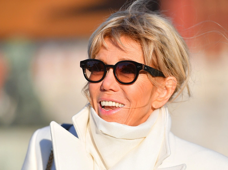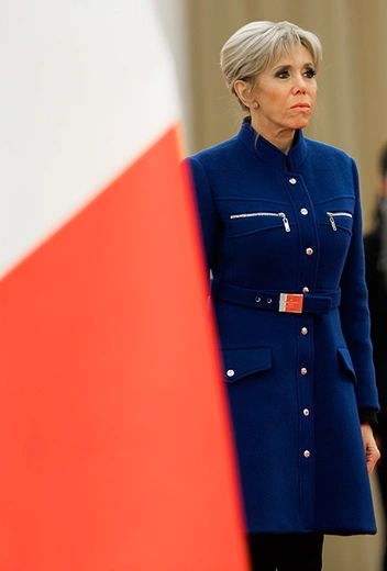 Брижит была бы не Брижит, если бы не прихватила с собой синее мини-платье от Louis Vuitton. На этот раз хейтеры могут дышать спокойно: первая леди Франции надела под него плотные черные колготки, избавляя злопыхателей от необходимости лицезреть ее ноги (и что особенно бесит некоторых — колени 64-летней супруги президента).