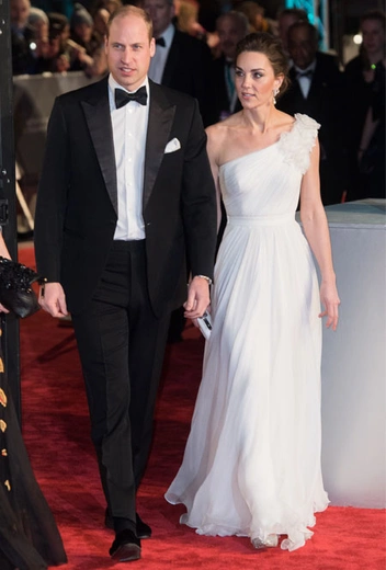Одним из самых долгожданных выходов на церемонии BAFTA в Лондоне было появление герцогов Кембриджских, и здесь Кэтрин не подвела. На ковровой дорожке кинопремии она появилась в роскошном белом платье в пол на одно плечо от Alexander McQueen. Завершали образ бриллиантовые серьги-капли, которые раньше принадлежали принцессе Диане.