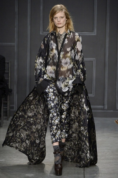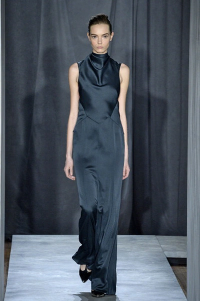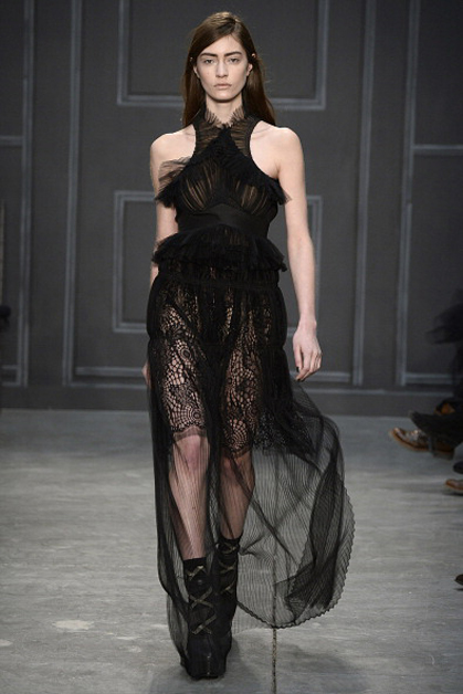 Коллекция Веры Вонг выдержана в духе готичного романтизма. В одежде преобладают темные цвета и легкие драпированные ткани.