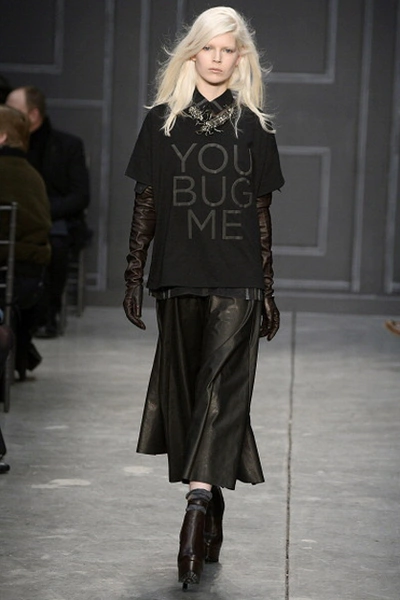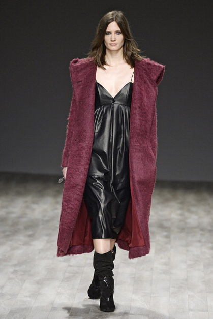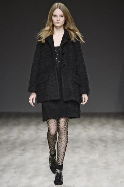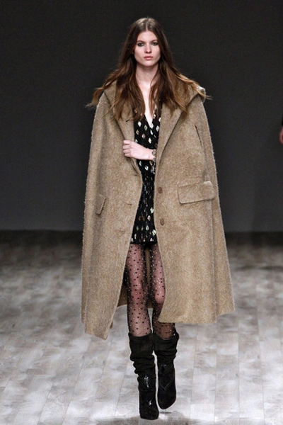 Мини-платье из легкой ткани, объемное шерстяное пальто, короткие сапоги – так предлагает одеваться следующей осенью Джилл Стюарт. Главные цвета одежды: черный, белый, бордовый и бежевый.