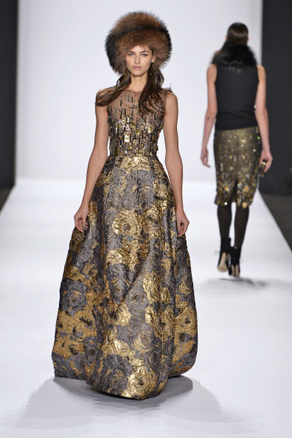 Дизайнеров Марка Бэджли и Джеймса Мишка на создание осенне-зимней коллекции вдохновила культура Восточной Европы. Платья в пол металлических оттенков, а также меховые шапки и воротники – основные мотивы их коллекции.