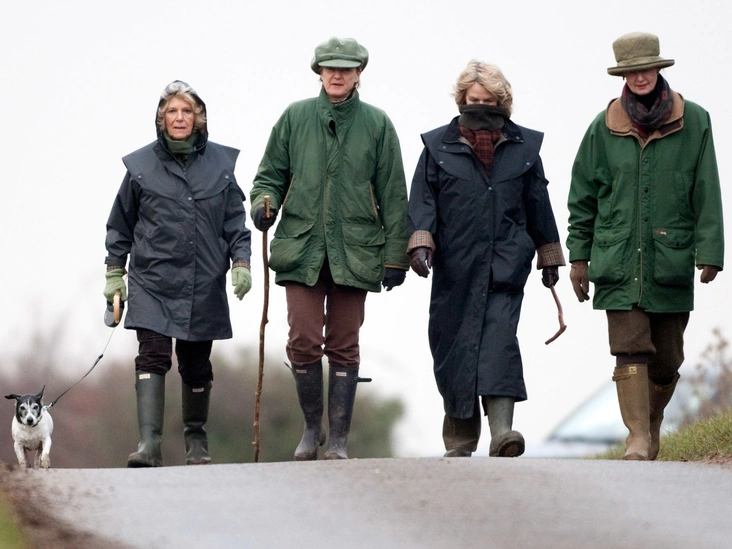 Герцогиня Корнуольская — настоящая икона европейского загородного стиля. Однажды ее запечатлели в компании подруг во время декабрьской прогулки в районе Сандрингема. На всех леди были непродуваемые куртки, клетчатые шарфы, коричневые брюки и надежные резиновые сапоги.