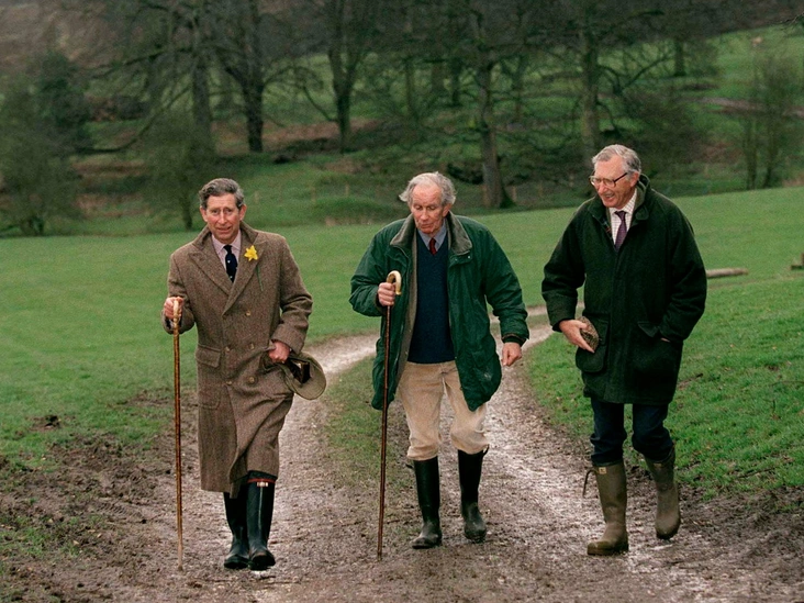 В 1999 году наследный принц был запечатлен в Североном Уэльсе во время послеобеденной прогулки с местными фермерами. На ферме Penbedw Уэльский появился в своем любимом двубортном пальто и черных хантерах с контрастным бордовым кантом без застежек.