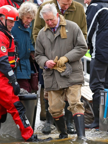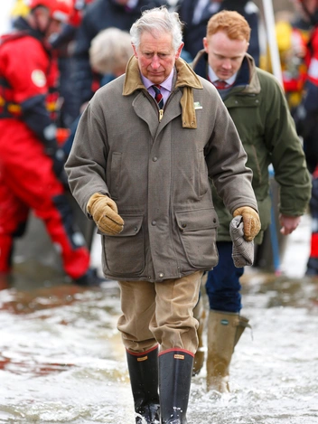 Через полтора десятка лет Его Высочество вновь предстал в той же черной паре на публике. Посещая пострадавших от наводнения в графстве Сомерсет, Чарльз облачился в клетчатую серую куртку, вельветовые брюки песочного оттенка и надежные сапоги Hunter.