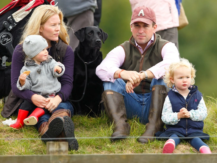 На этом семейном снимке Питера и Отем Филлипс в компании двух дочерей на внуке королевы хорошо видны коричневые резиновые сапоги Hunter с расстегнутыми ремешками.