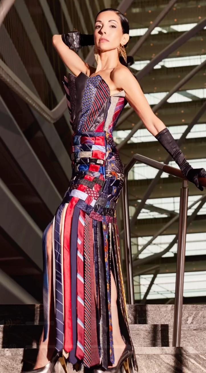 Собственный бренд Макса появился, когда многим его ровесникам только покупают первый школьный рюкзак: в 2021 году он запускает Couture to the Max и показывает дебютную коллекцию в Лос‑Анджелесе. В основе — все тот же детский DIY, который неожиданно перерастает в авторскую эстетику: пэчворк из лент и обрезков, полиэтиленовая пленка, платья из галстуков и привычка превращать любые материалы в драматичные, почти театральные силуэты.