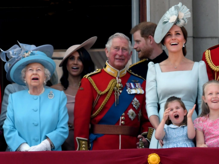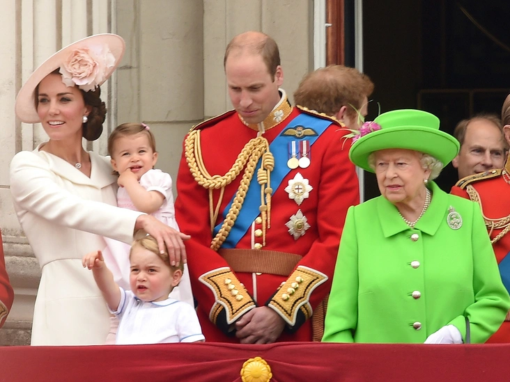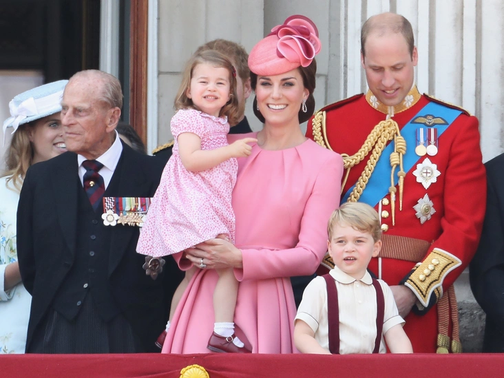 В том же платье принцесса предстала на балконе Букингемского дворца во время официального празднования дня рождения ее августейшей прабабушки. Державшая дочку на руках герцогиня Кембриджская была одета в розовое платье Alexander McQueen и шляпку, сочетающее несколько оттенков розовой гаммы.