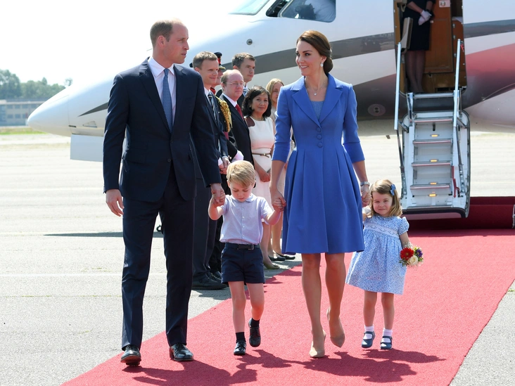 Во время государственного визита в Польшу и Германию в 2017-м герцогиня и принцесса продемонстрировали еще два примера дабл-дрессинга. Первый из них напоминает то, что королевские поклонники видели на снимках из Канады: более насыщенное платье-пальто на Кэтрин и очаровательное пасторальное платье в мелкий цветочек в сочетании с белыми носками и синими сандалиями на Шарлотте. Принц Джордж также выдержал голубую гамму.