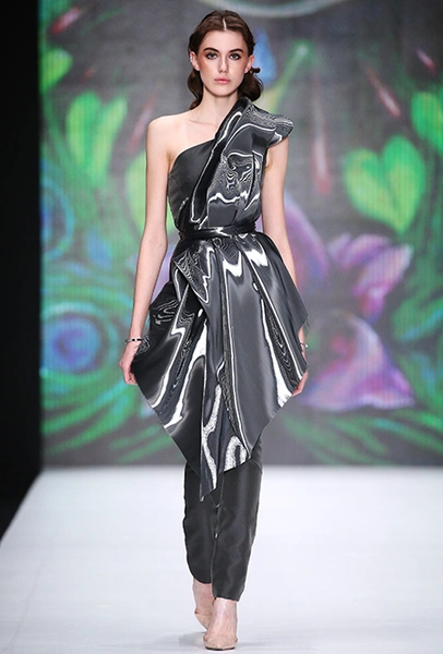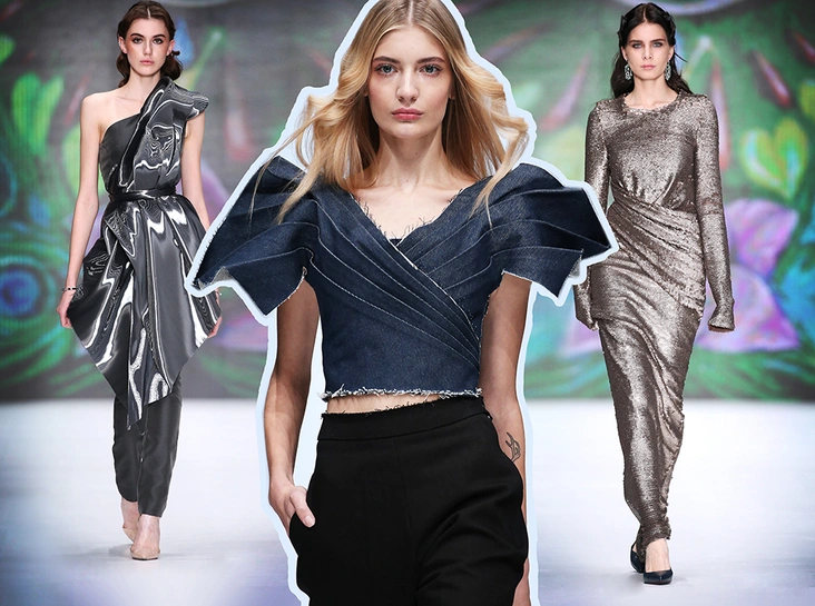Эту идею поддерживают и выпускники Лаборатории моды Вячеслава Зайцева, акцентируя свое внимание на металлике и асимметричном крое. Ну а дизайнер Даша Гаузер в своей новой коллекции так и вообще рассуждает о сотворении Вселенной.