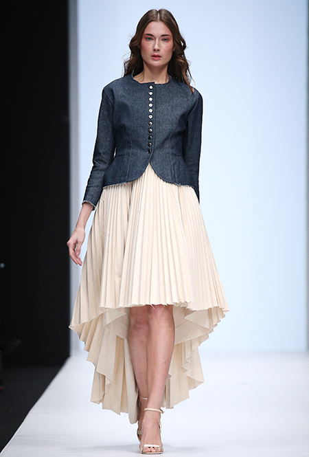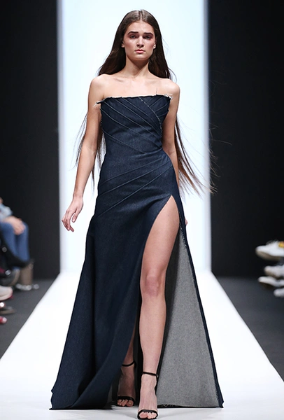 Один из самых удачных дебютов стал показ дизайнера Оли Костериной. В основу ее коллекции легли собственные представления о базовом гардеробе и минимализме. Оля подготовила целый ряд моделей от повседневных топов, джинсов и жакетов до коктейльных и вечерних платьев, главной «фишкой» которых стали необработанные края.